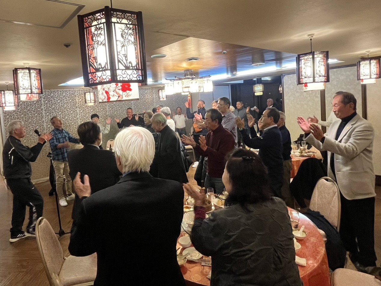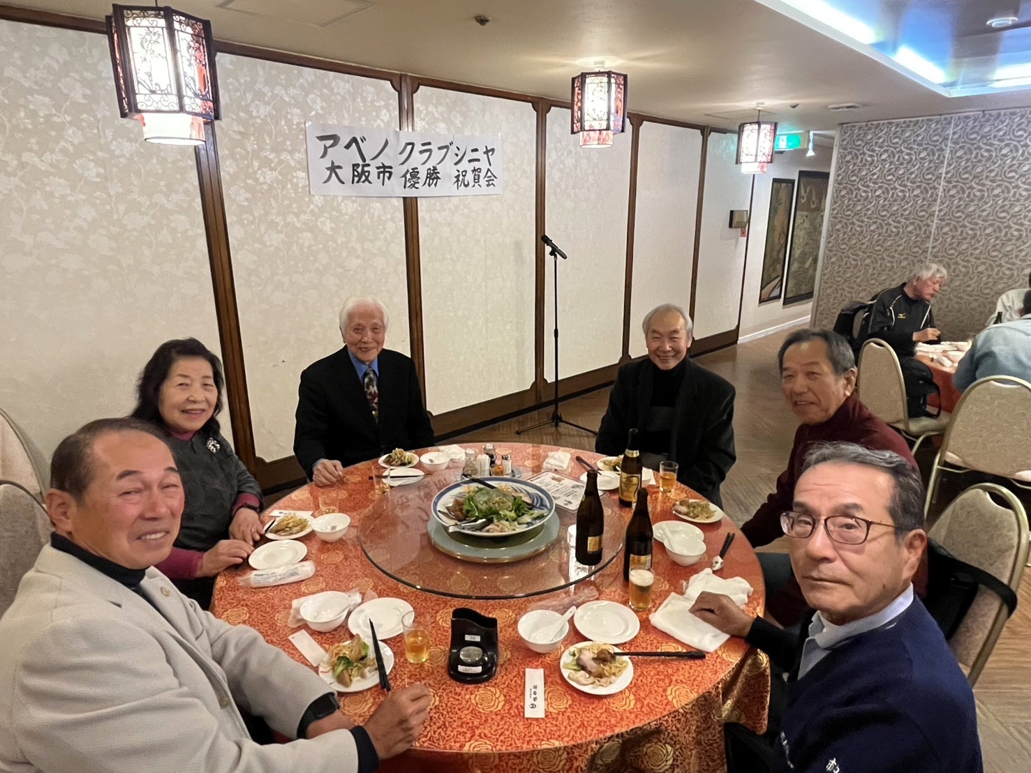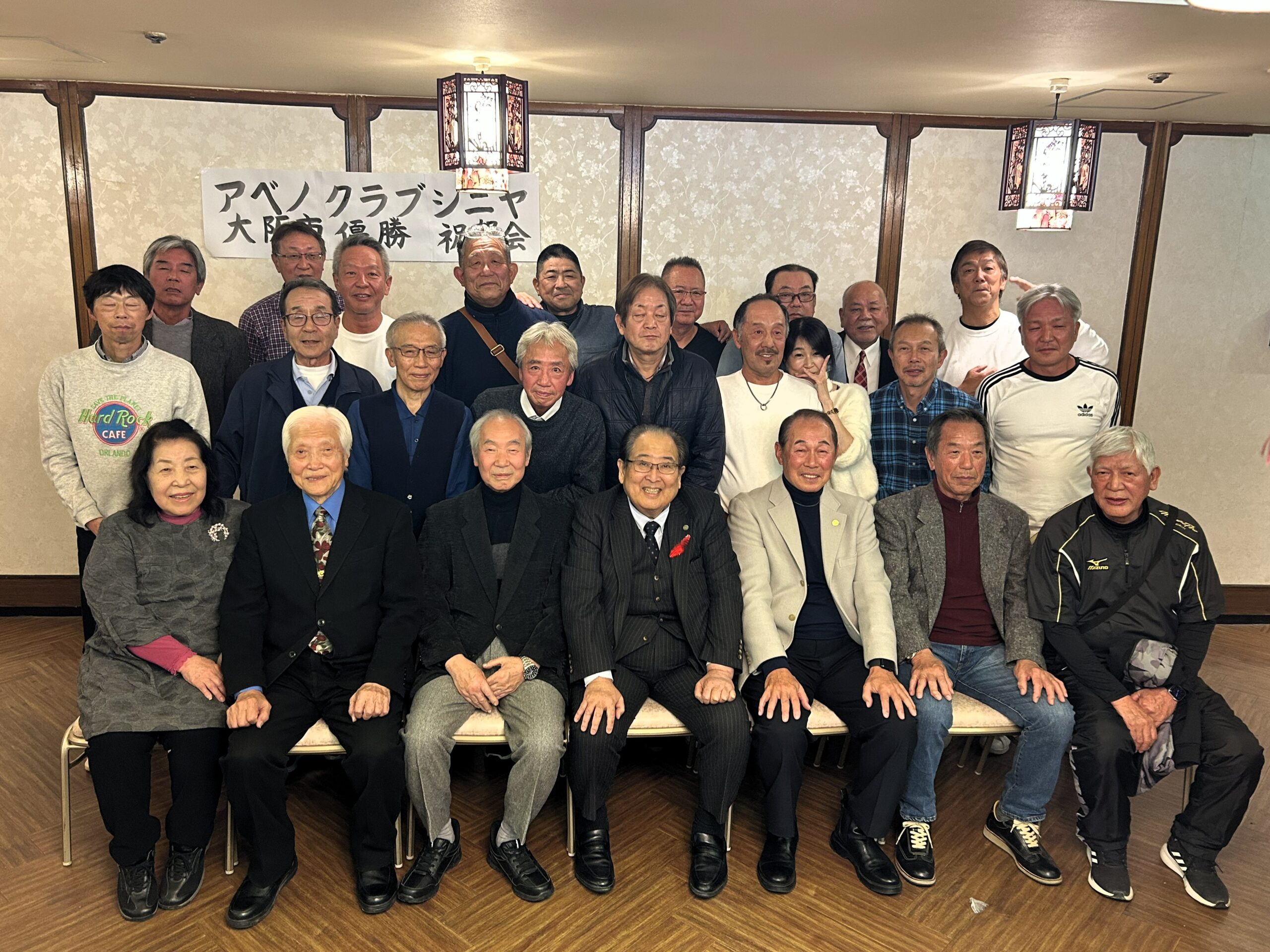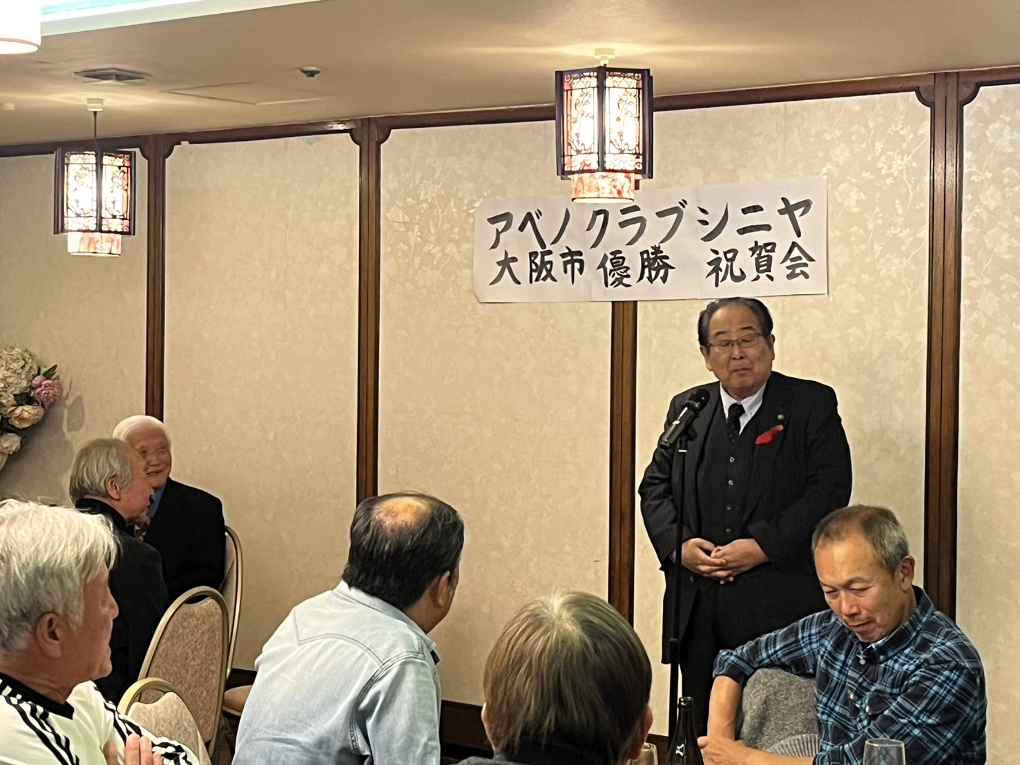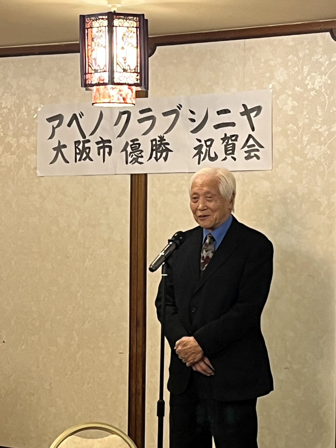メンバーの他に、地元議員や東成区ソフドール連盟会長、北都連盟会長などがお祝いに駆けつけるなど賑やかで楽しい祝賀会が催された。村上監督「日ごろから北都シニアリーグて゛もまれているおかげで・・・」  嬉しい限りではありませんか。