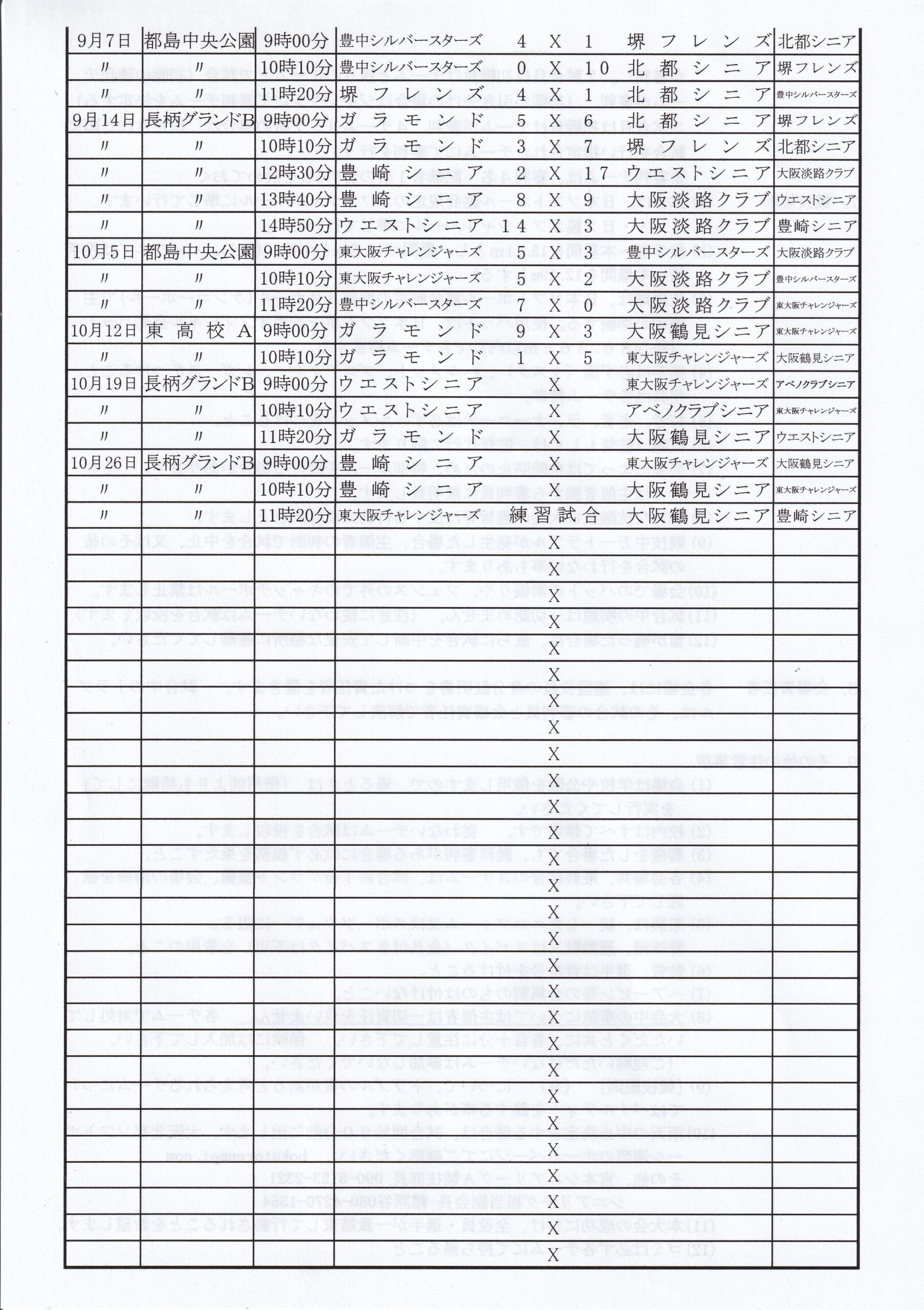 本日の星取表(シニアリーグA・10月12日)
