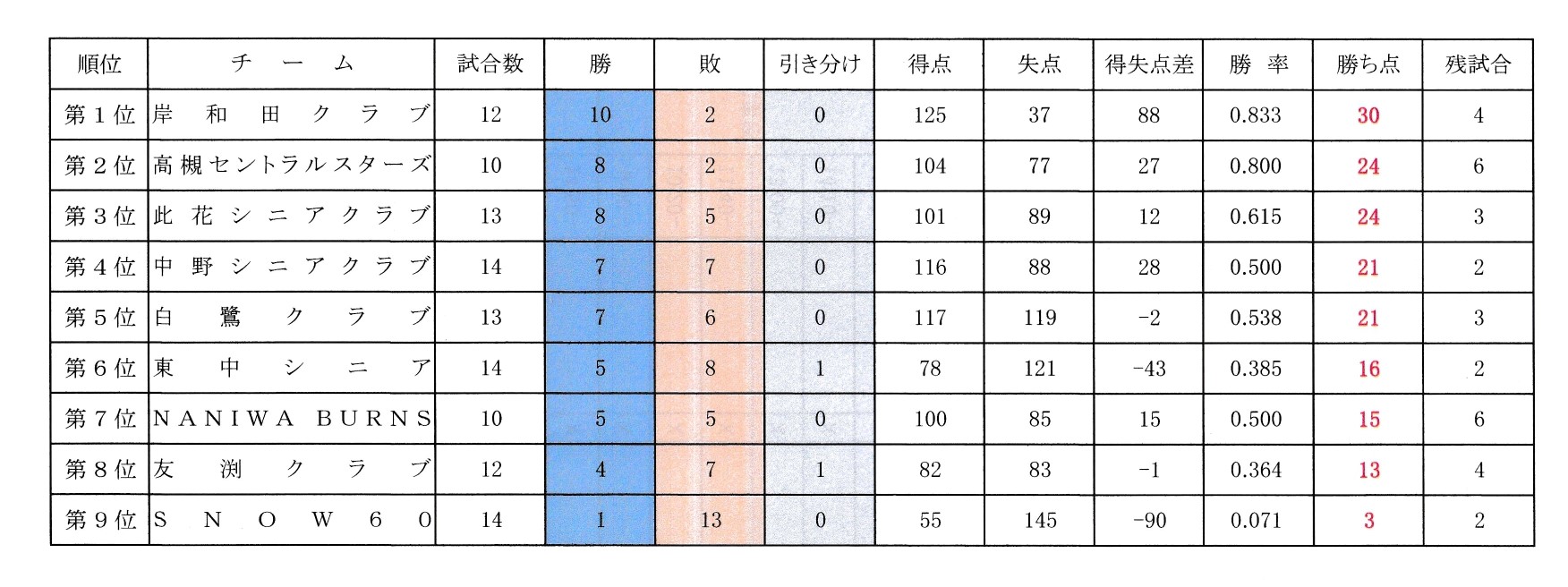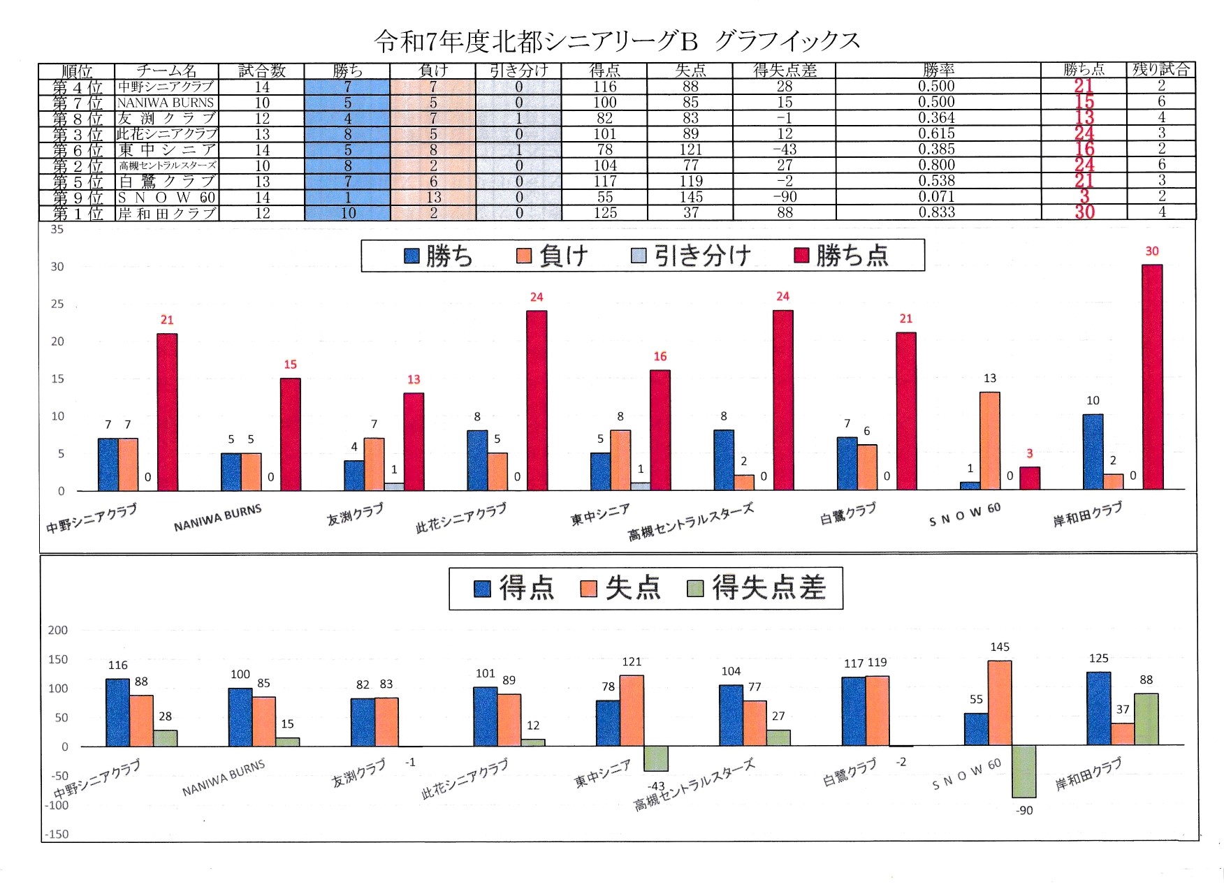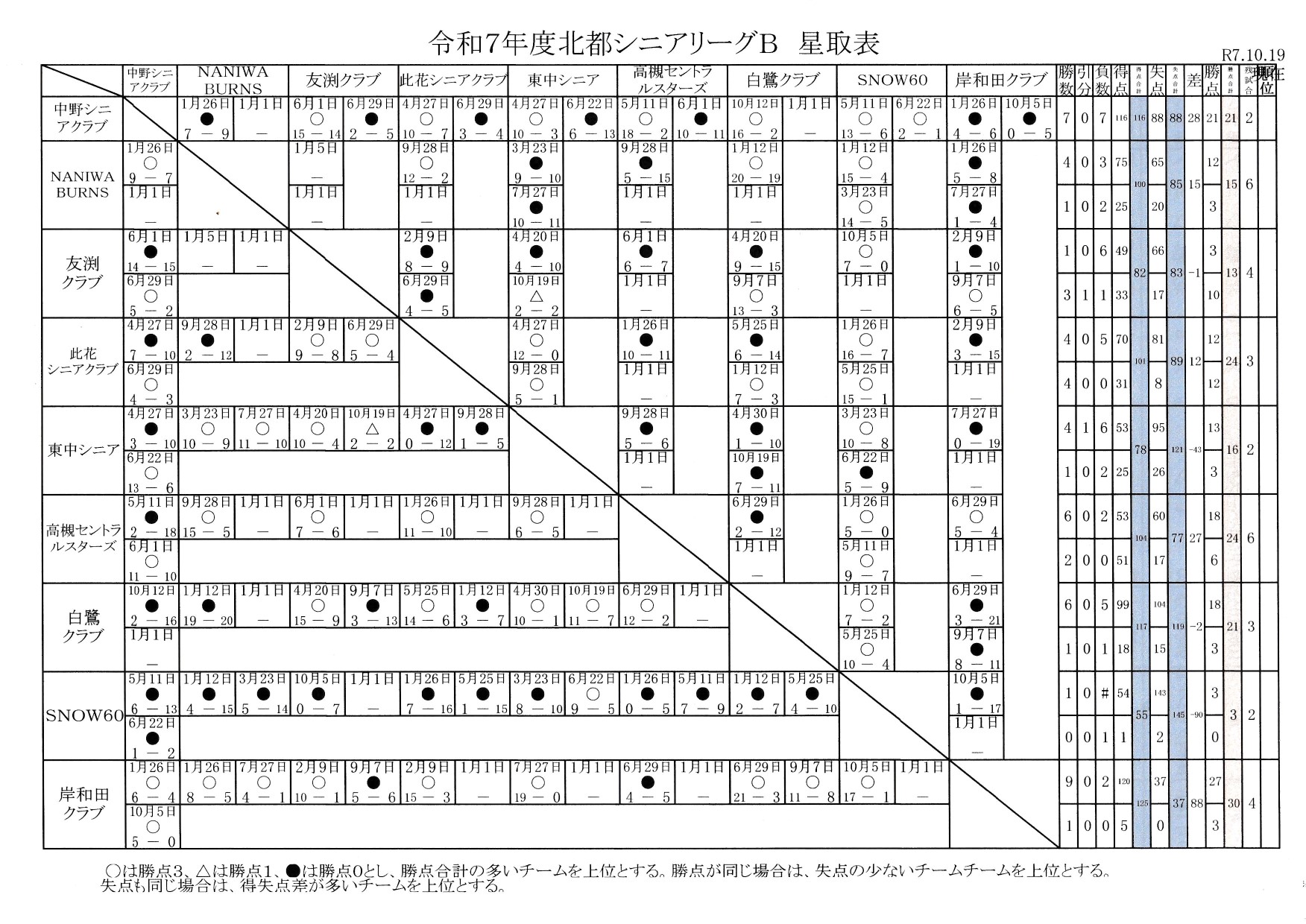 令和7年度北都シニアリーグ成績表(10/19現在)
