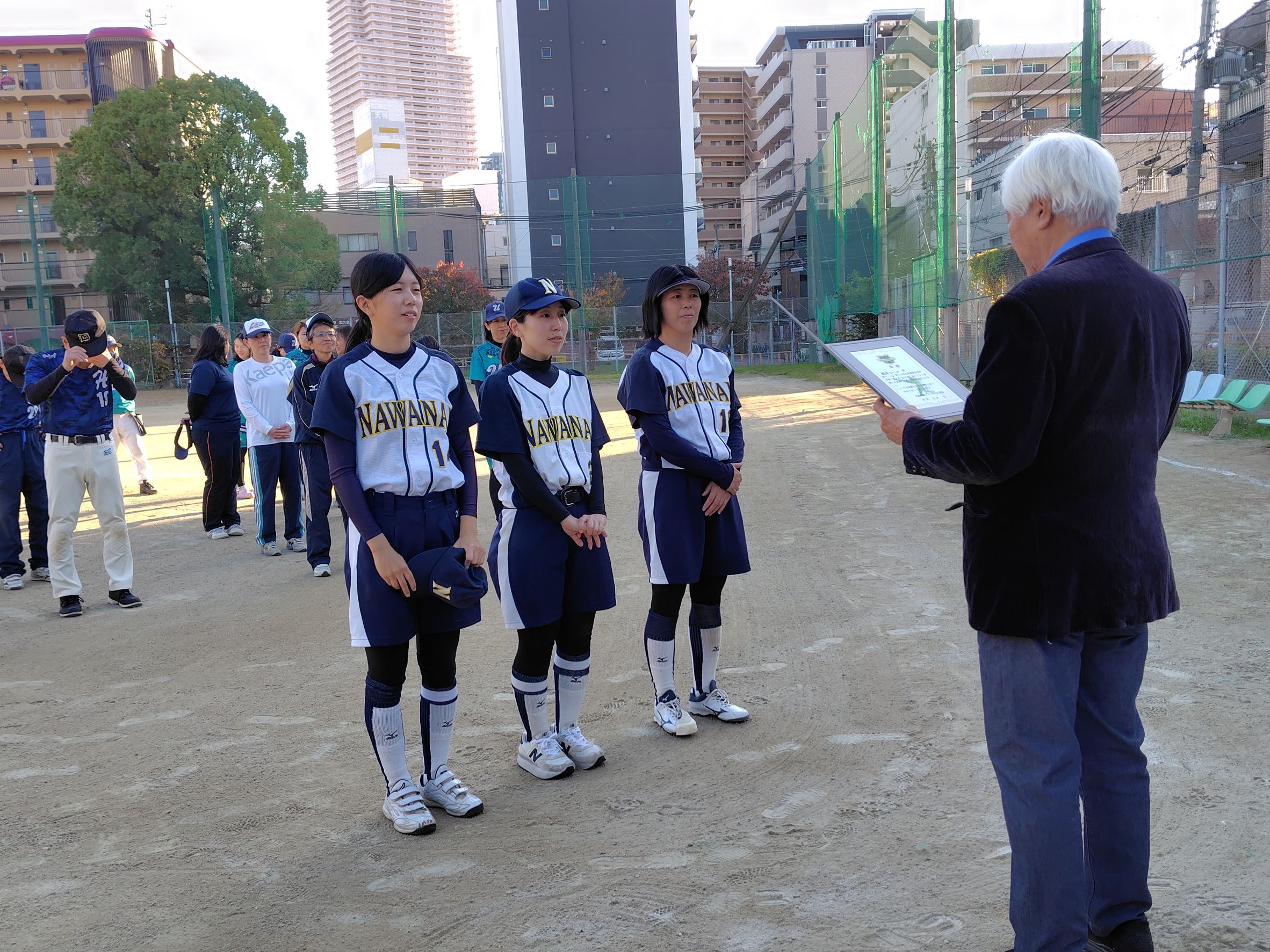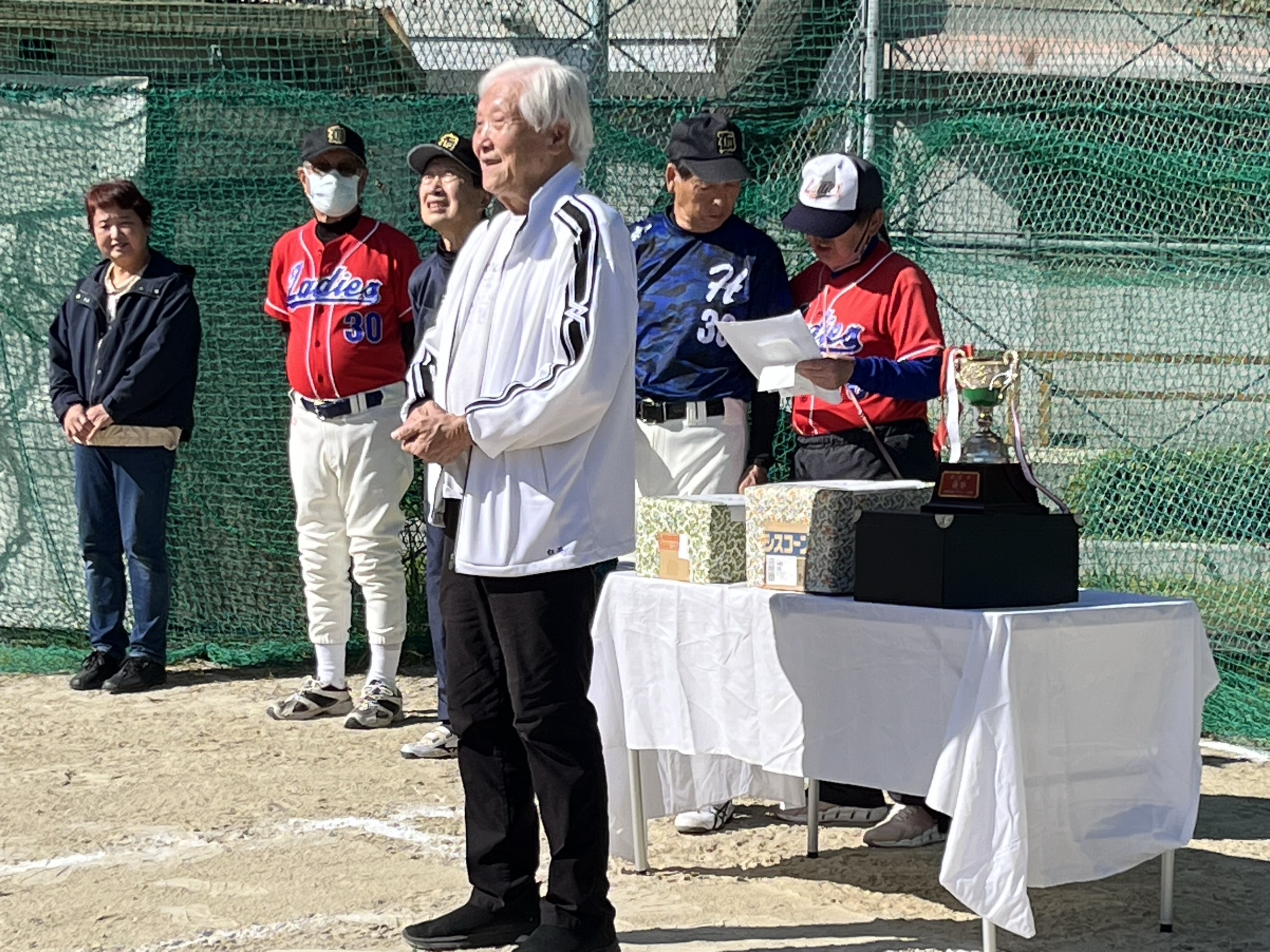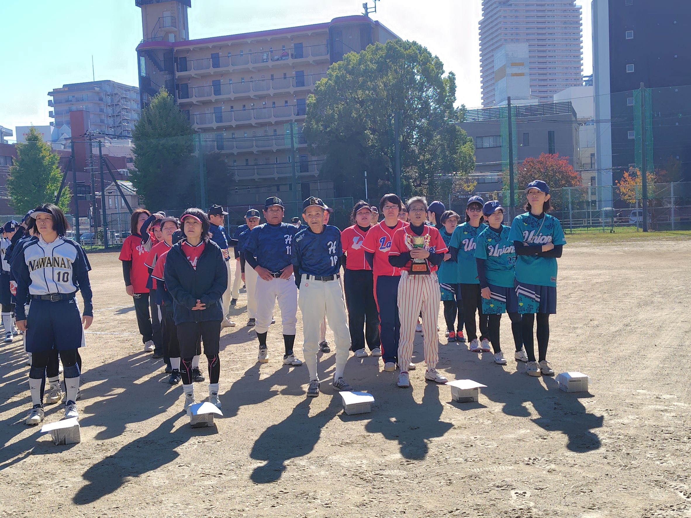 令和7年11月16日(日)、桜宮中学第二グランドにて「第38回北都連盟会長杯争奪ソフトボール大会」が開催されました。5チームが参加し、秋晴れの空の下、白熱した5試合が展開。縄南フェローズが2試合連続完封勝利で優勝を飾りました。
