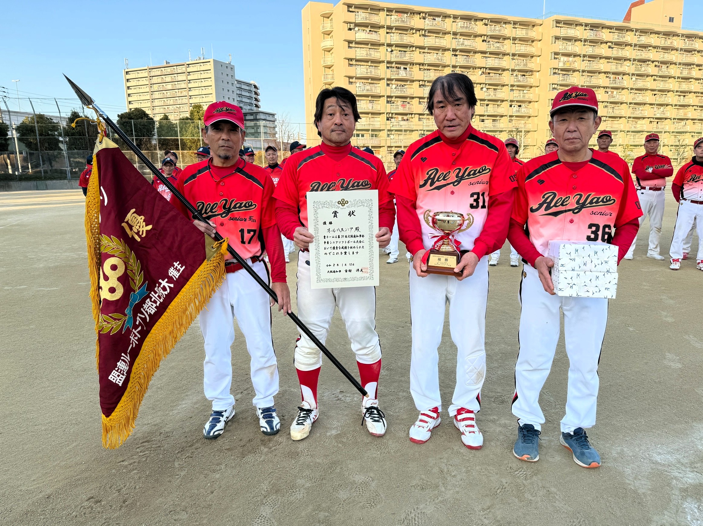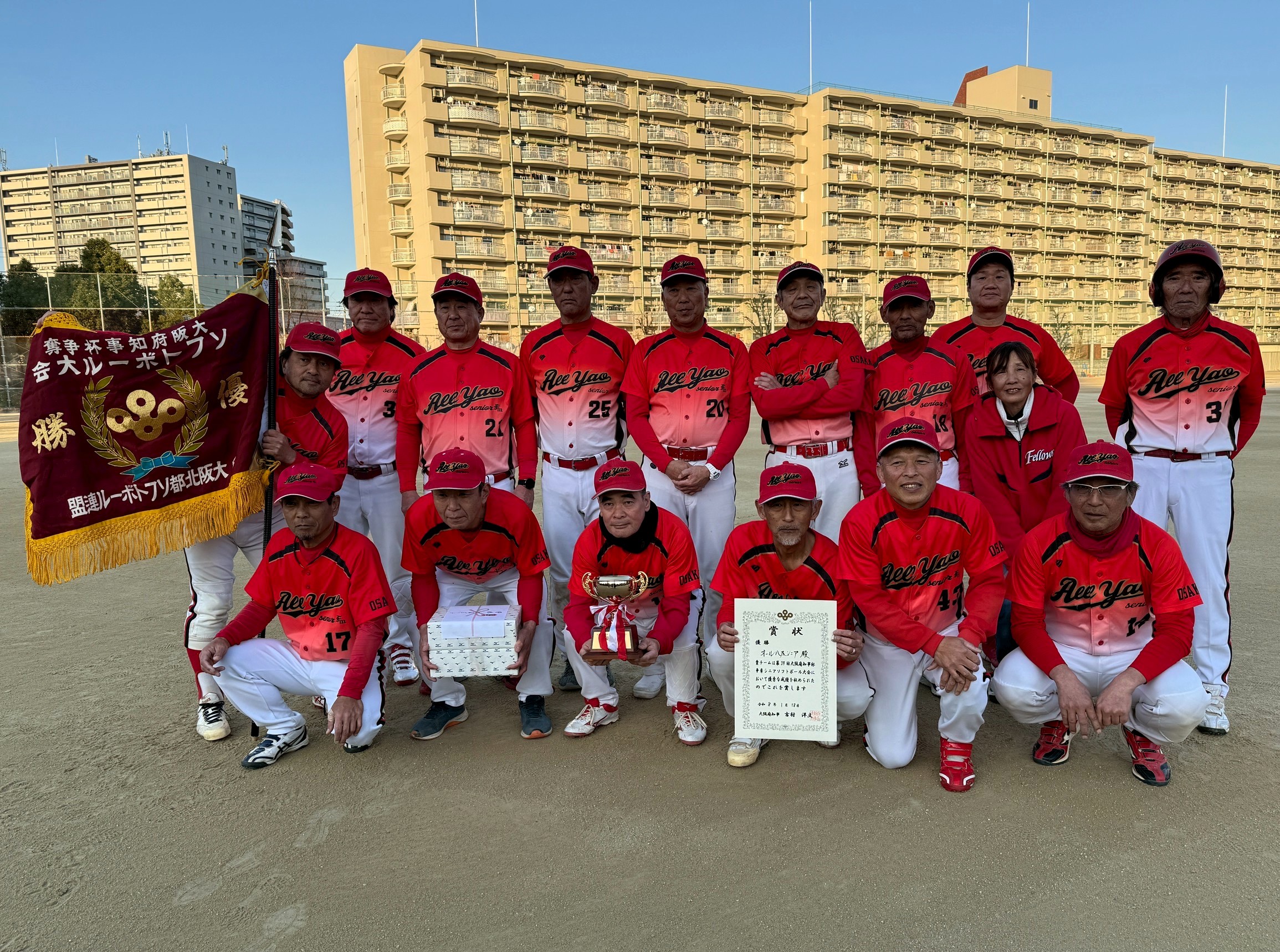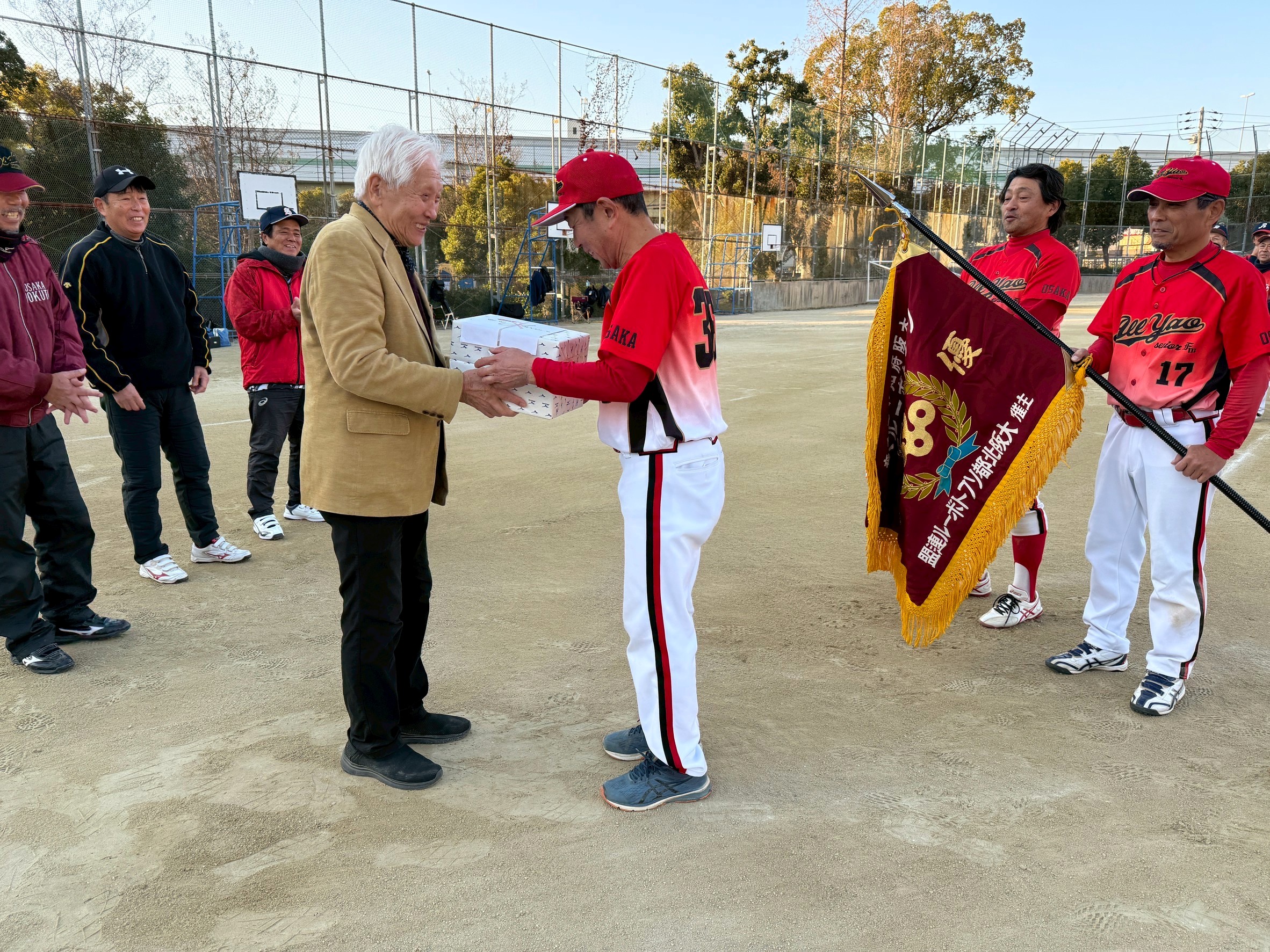 決勝戦はオール八尾シニアが初回から猛攻を仕掛け、アベノクラブシニアを圧倒。9対1の快勝で第39回大会の王者に輝きました。オール八尾シニアは初出場で初優勝。今季より他の4チームと共に北都シニアリーグに参加したが、シニアリーグCからのスタートです。