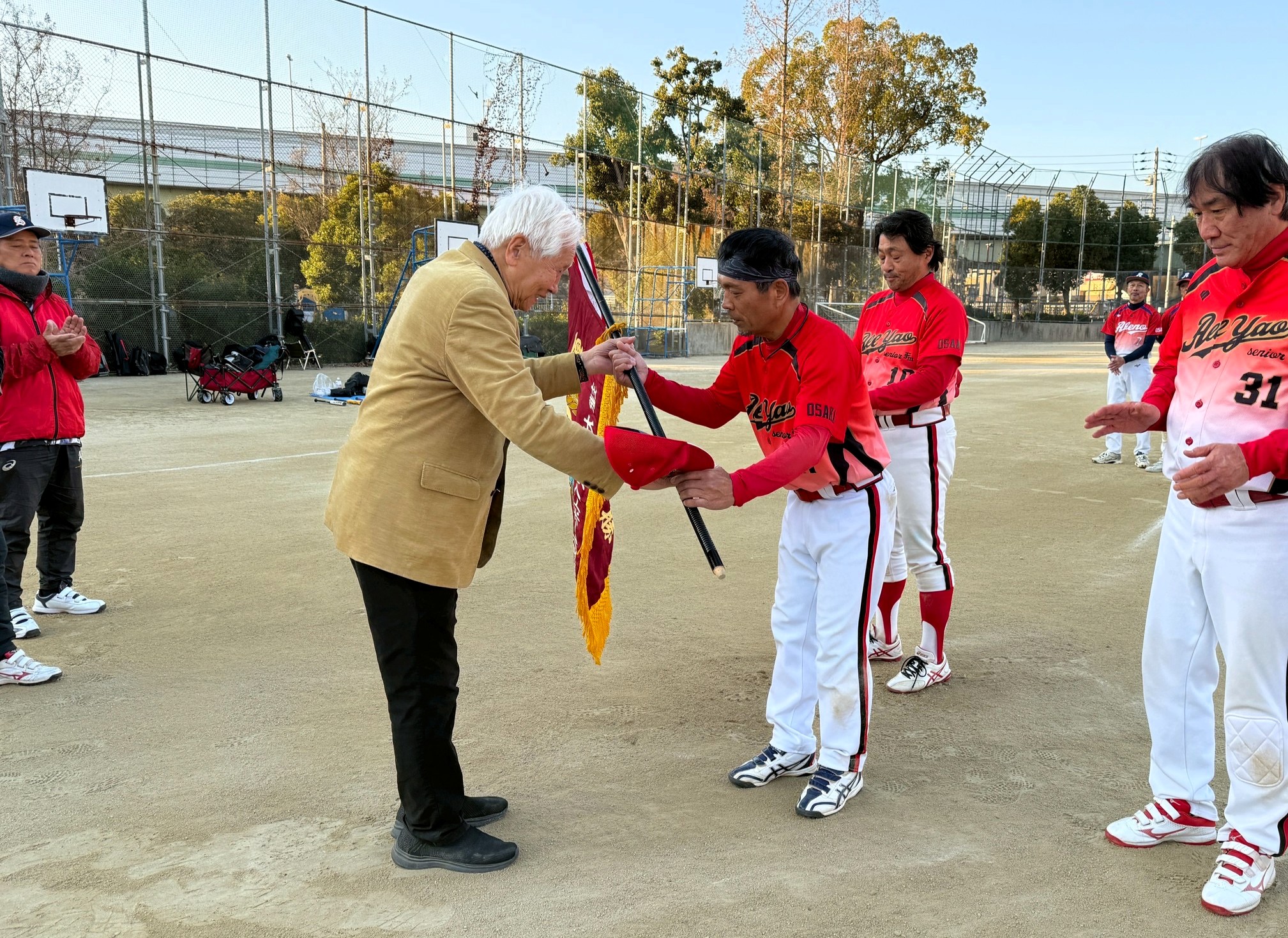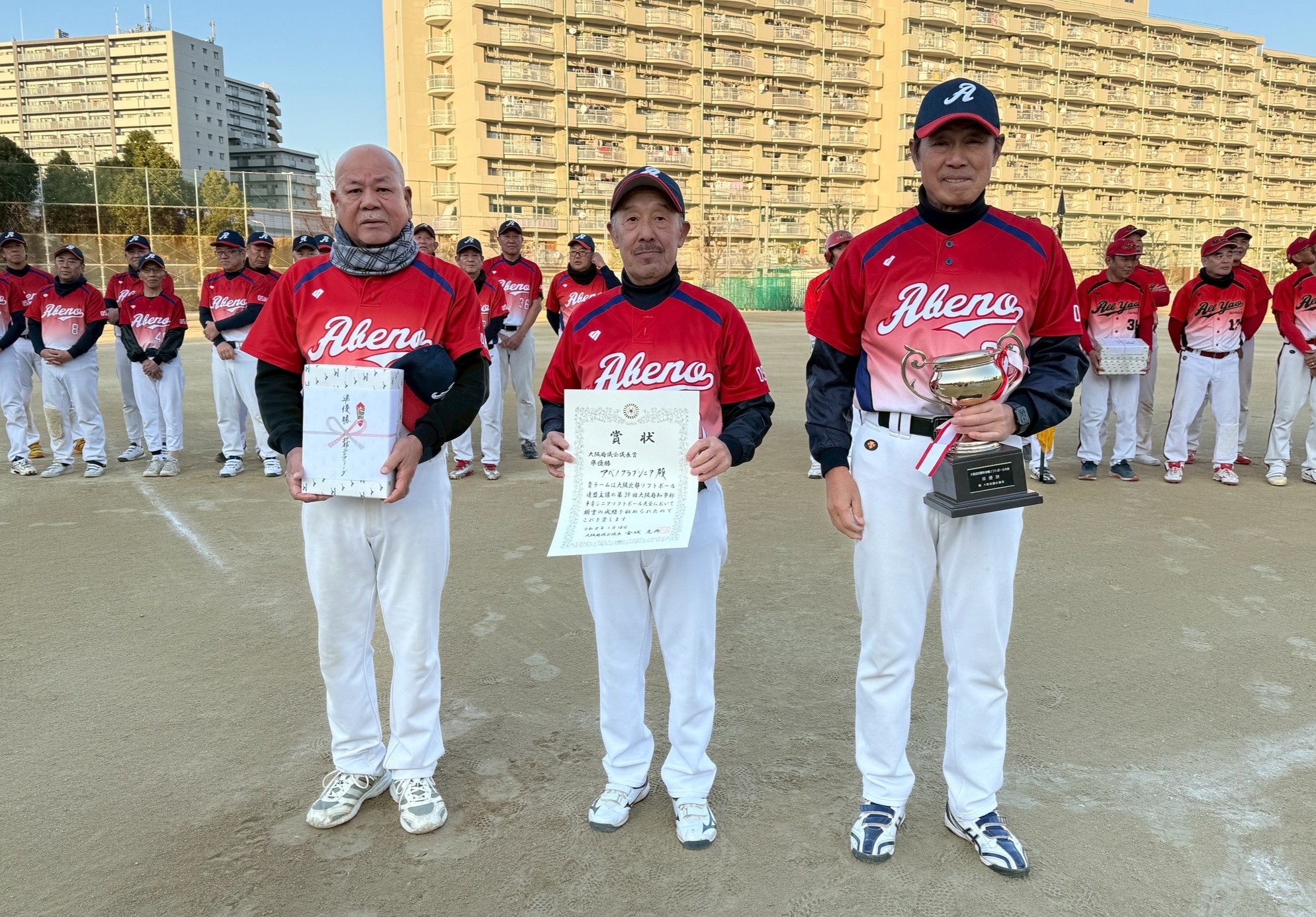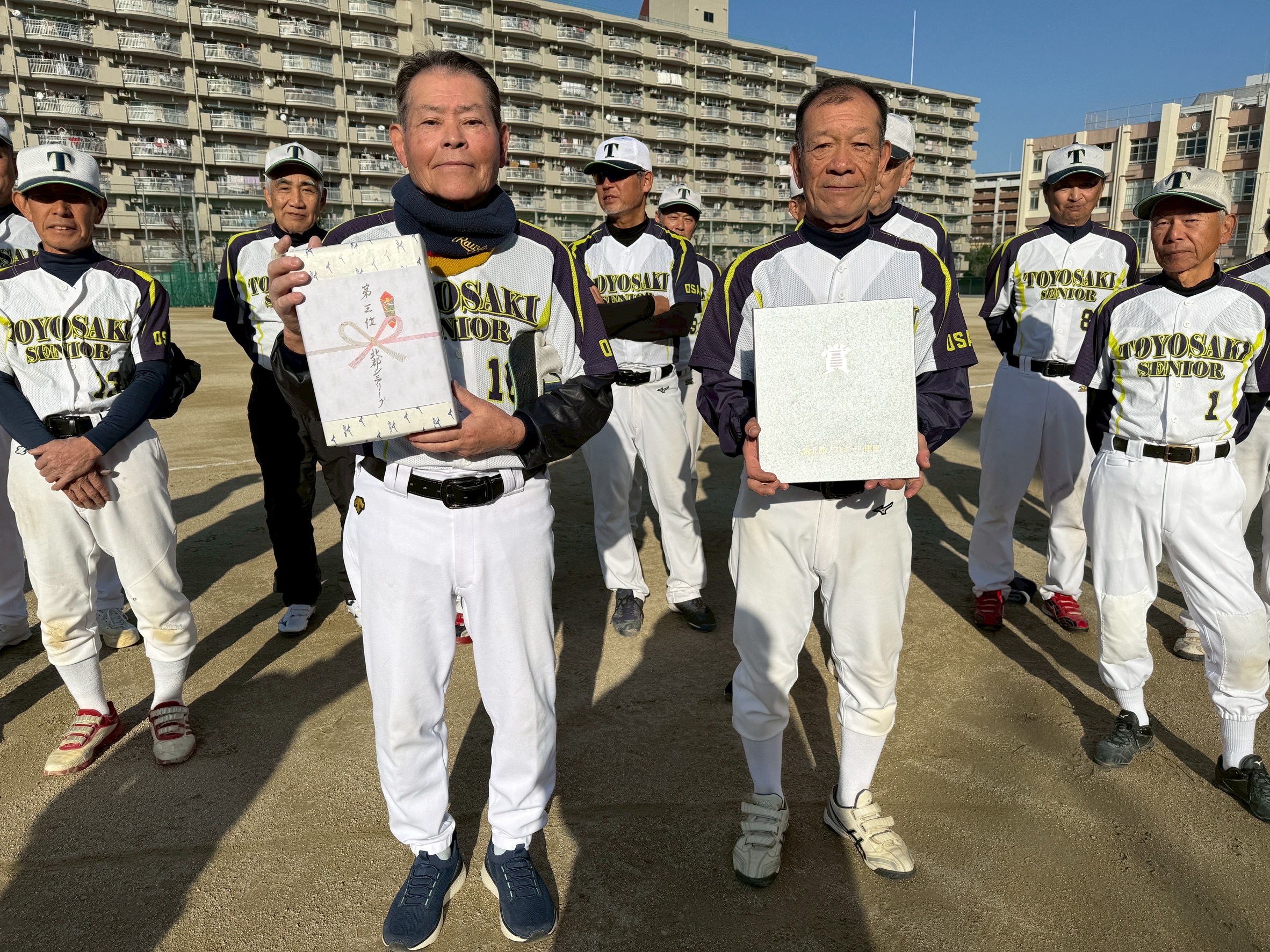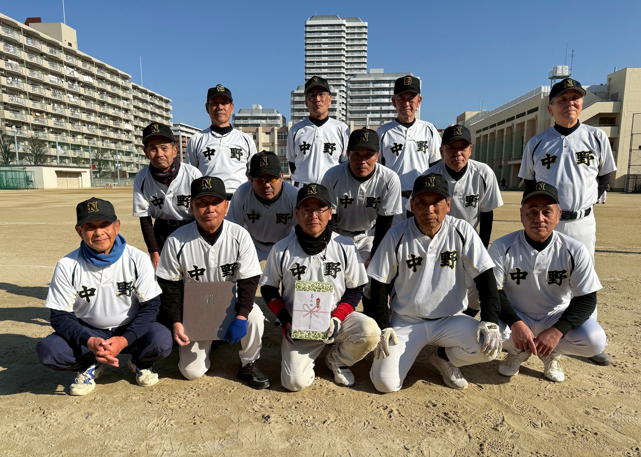 決勝戦はオール八尾シニアが初回から猛攻を仕掛け、アベノクラブシニアを圧倒。9対1の快勝で第39回大会の王者に輝きました。オール八尾シニアは初出場で初優勝。今季より他の4チームと共に北都シニアリーグに参加したが、シニアリーグCからのスタートです。
