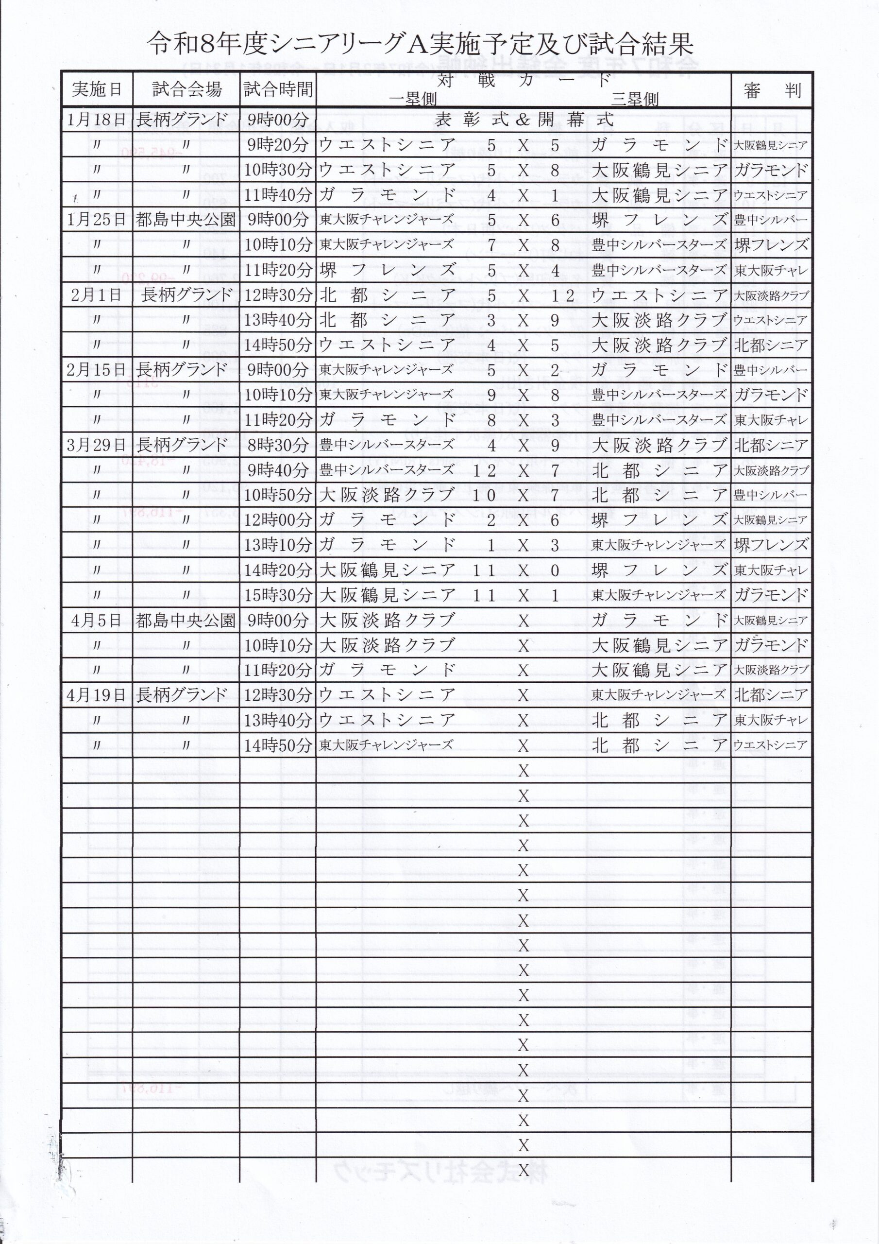 令和8年3月29日、都島中央公園グラウンドにて北都シニアリーグAの公式戦7試合が行われました。