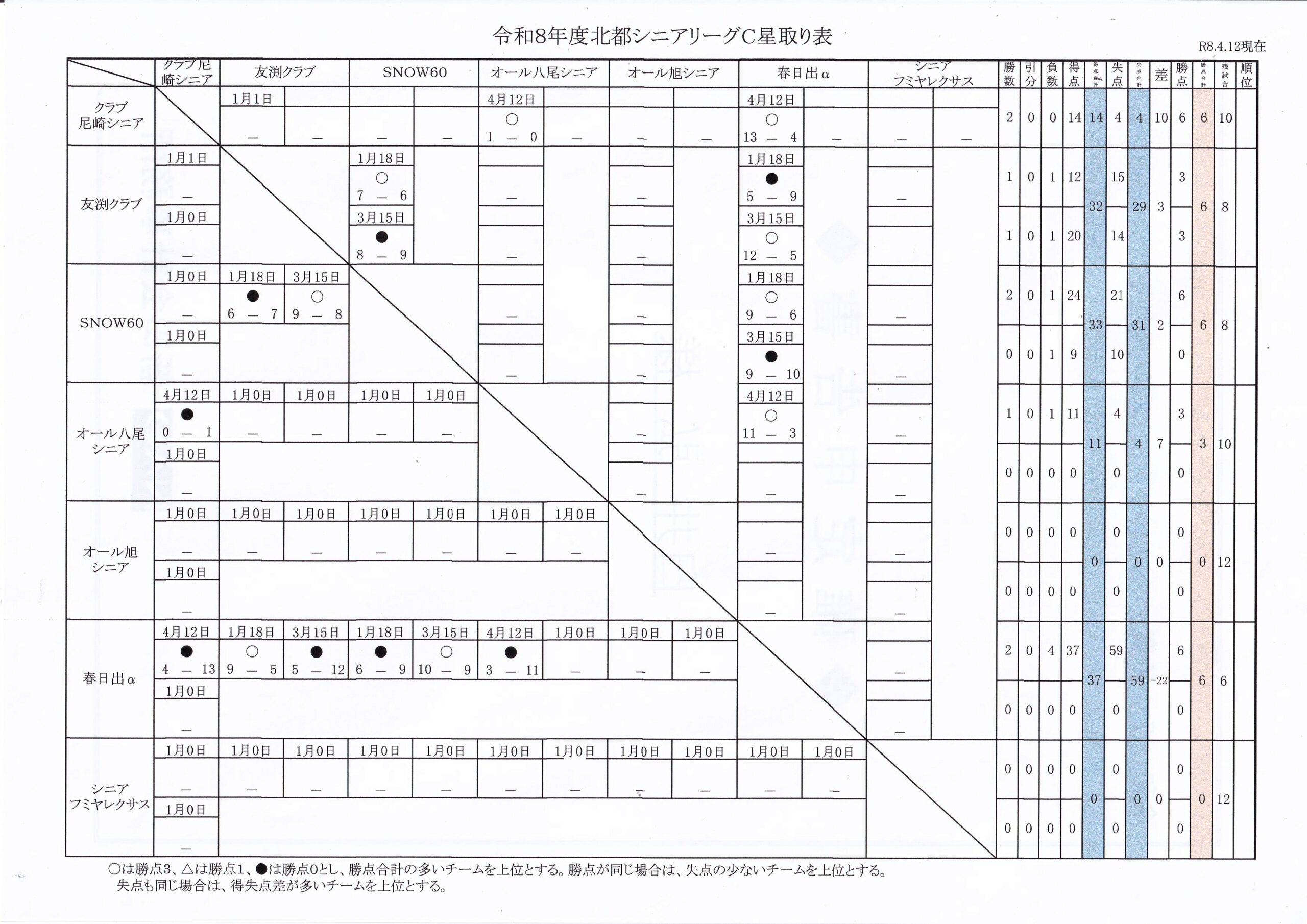 令和8年4月12日、都島中央公園にてシニアリーグCの公式戦3試合が行われました。