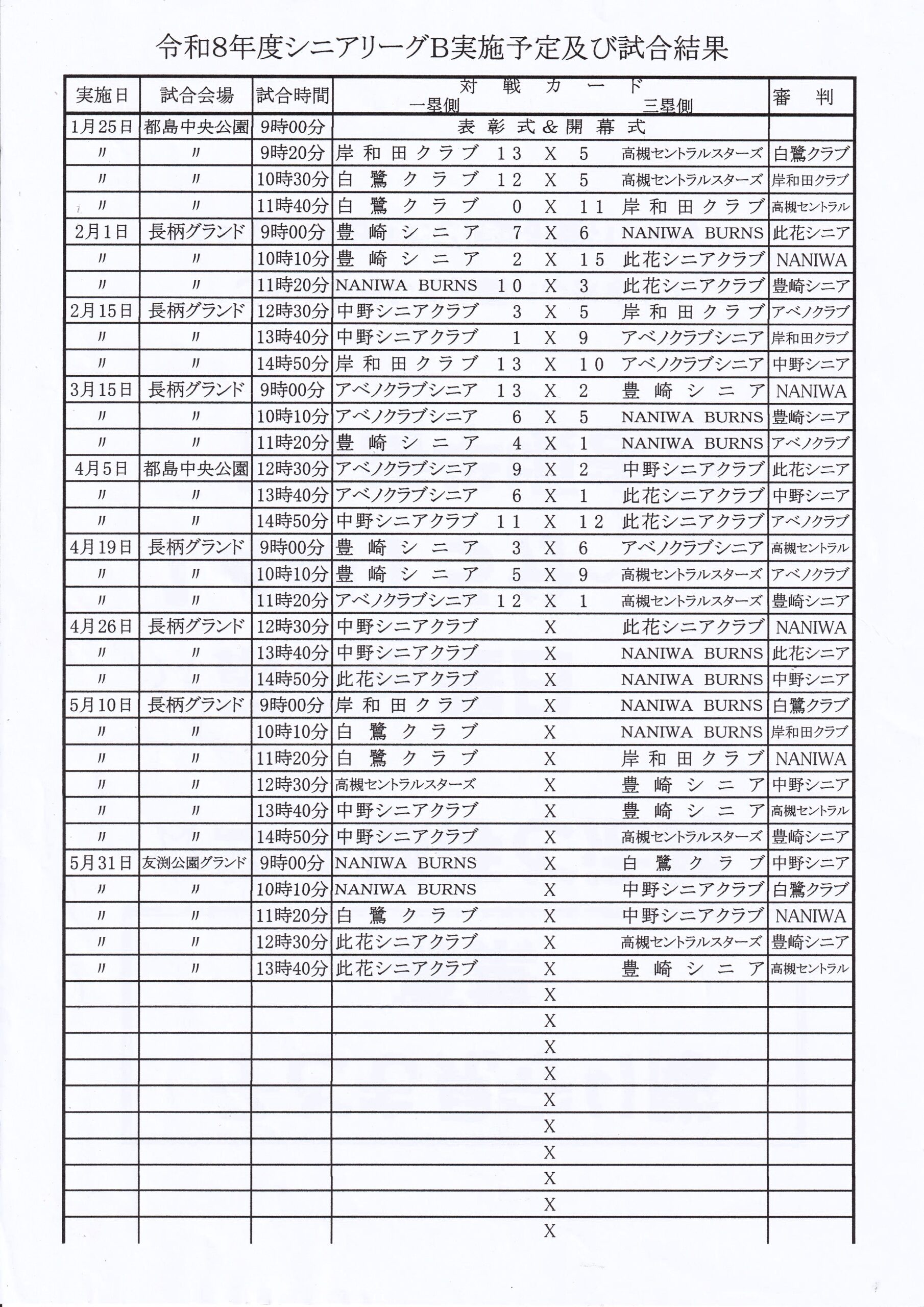 | アベノクラブシニア | 2 | 0 | 4 | × | - | - | - | 6 |