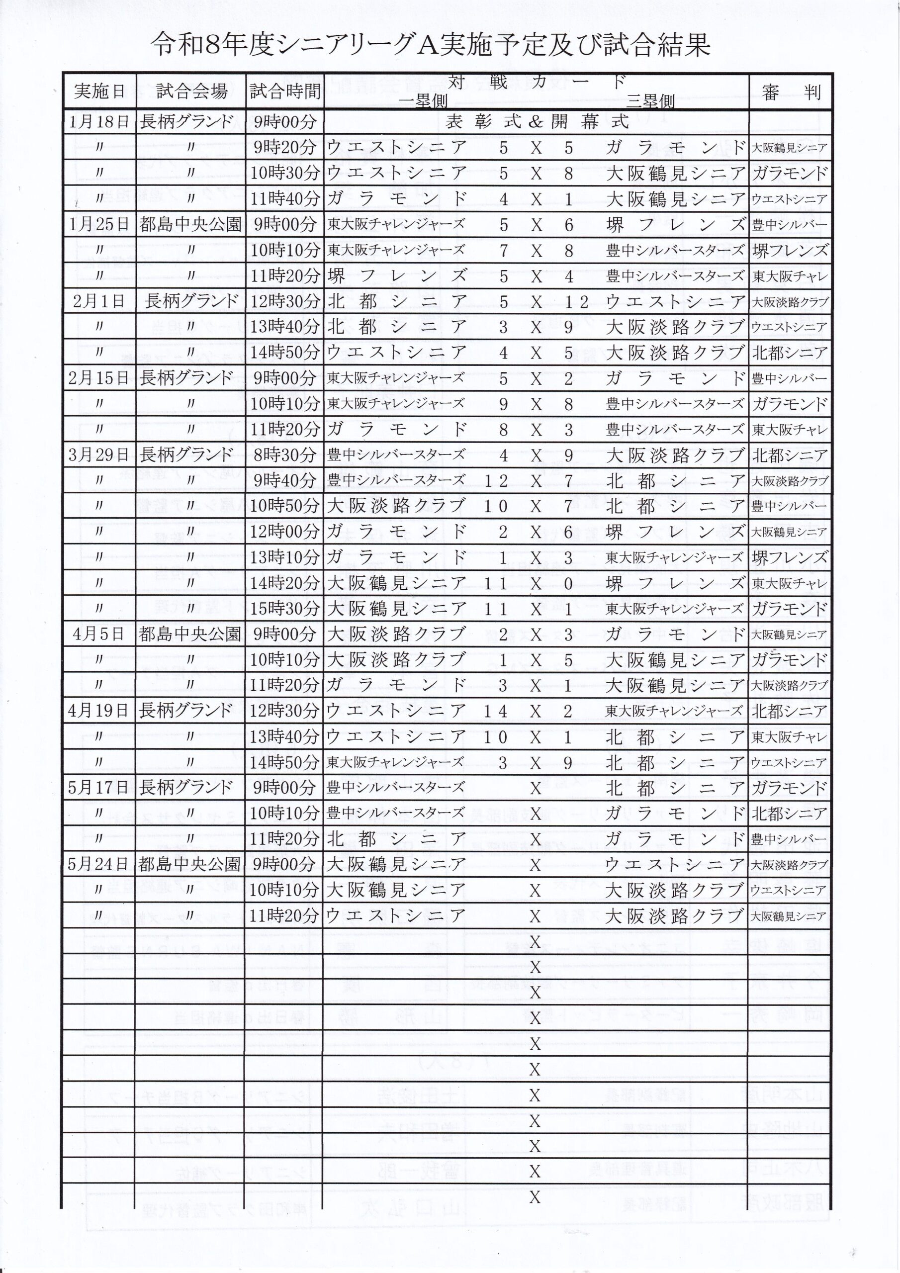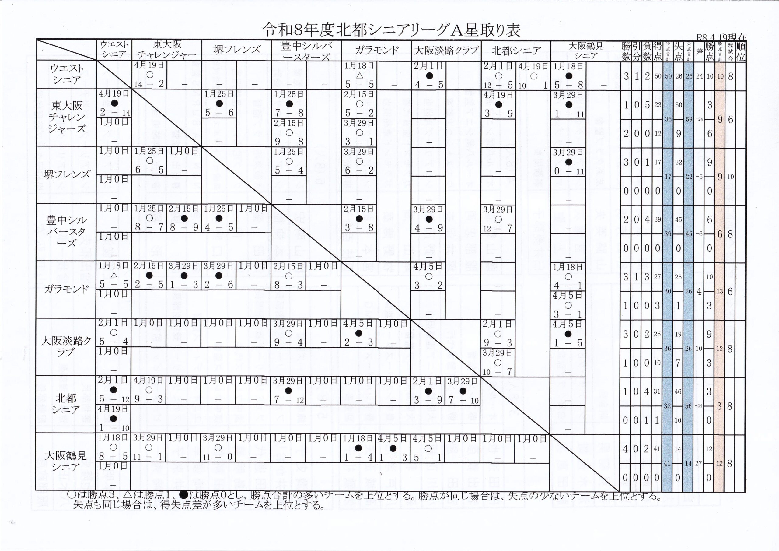| ウエストシニア | 7 | 0 | 7 | × | - | - | - | 14 |